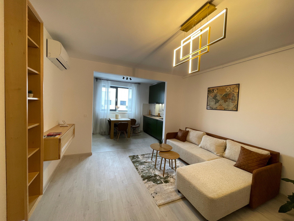 Este mobilat și utilat complet, totul fiind nou (2023), și dispune de: